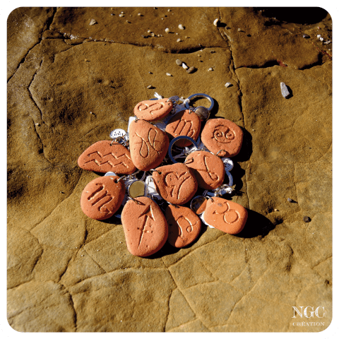 Porte-clés Gémeaux, galet naturel