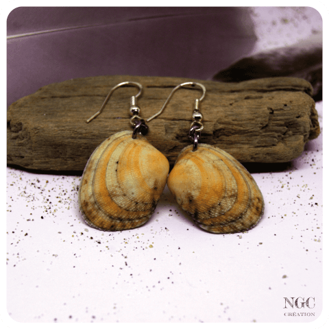 Paire de boucles d'oreilles unique. Les deux faces du même coquillage pour sublimer votre visage. Crochets d'oreilles en argent 925 et anneaux en acier inoxydable. ~ Taille approximative : 2,6 cm de haut par 2 cm de large ~ Poids de la paire : inférieur à 1 g