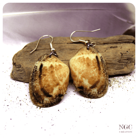 Paire de boucles d'oreilles unique. Les deux faces du même coquillage pour sublimer votre visage. Crochets d'oreilles en argent 925 et anneaux en acier inoxydable. ~ Taille approximative : 3,2 cm de haut par 2,2 cm de large ~ Poids de la paire : inférieur à 1 g