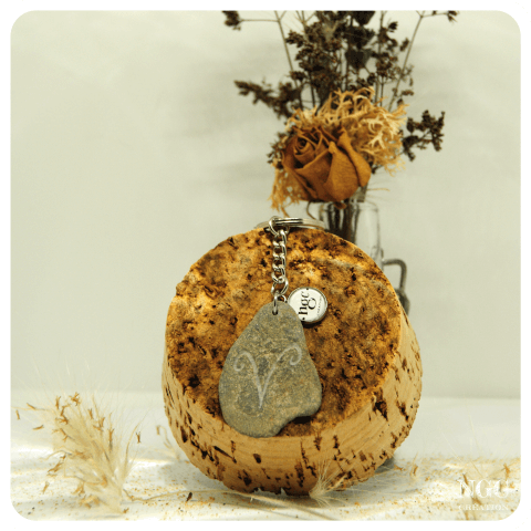 Porte-clés unique Galet naturel avec le signe du Bélier gravé à la main, accompagné de son cabochon "Ngc Création".