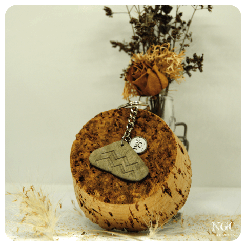 Porte-clés unique Galet naturel avec le signe du Verseau gravé à la main, accompagné de son cabochon "Ngc Création".