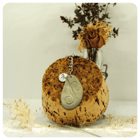 Porte-clés unique Galet naturel avec le signe du Lion gravé à la main, accompagné de son cabochon "Ngc Création".