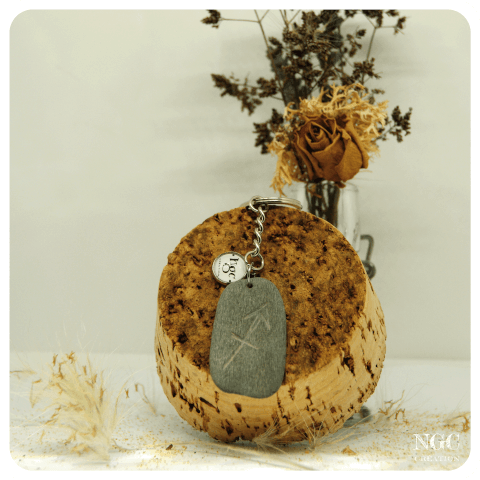 Porte-clés unique Galet naturel avec le signe du Sagittaire gravé à la main, accompagné de son cabochon "Ngc Création".