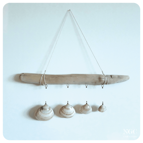 Mobile à adopter 31 cm de long par 13 cm de haut Bois flotté, coquillages